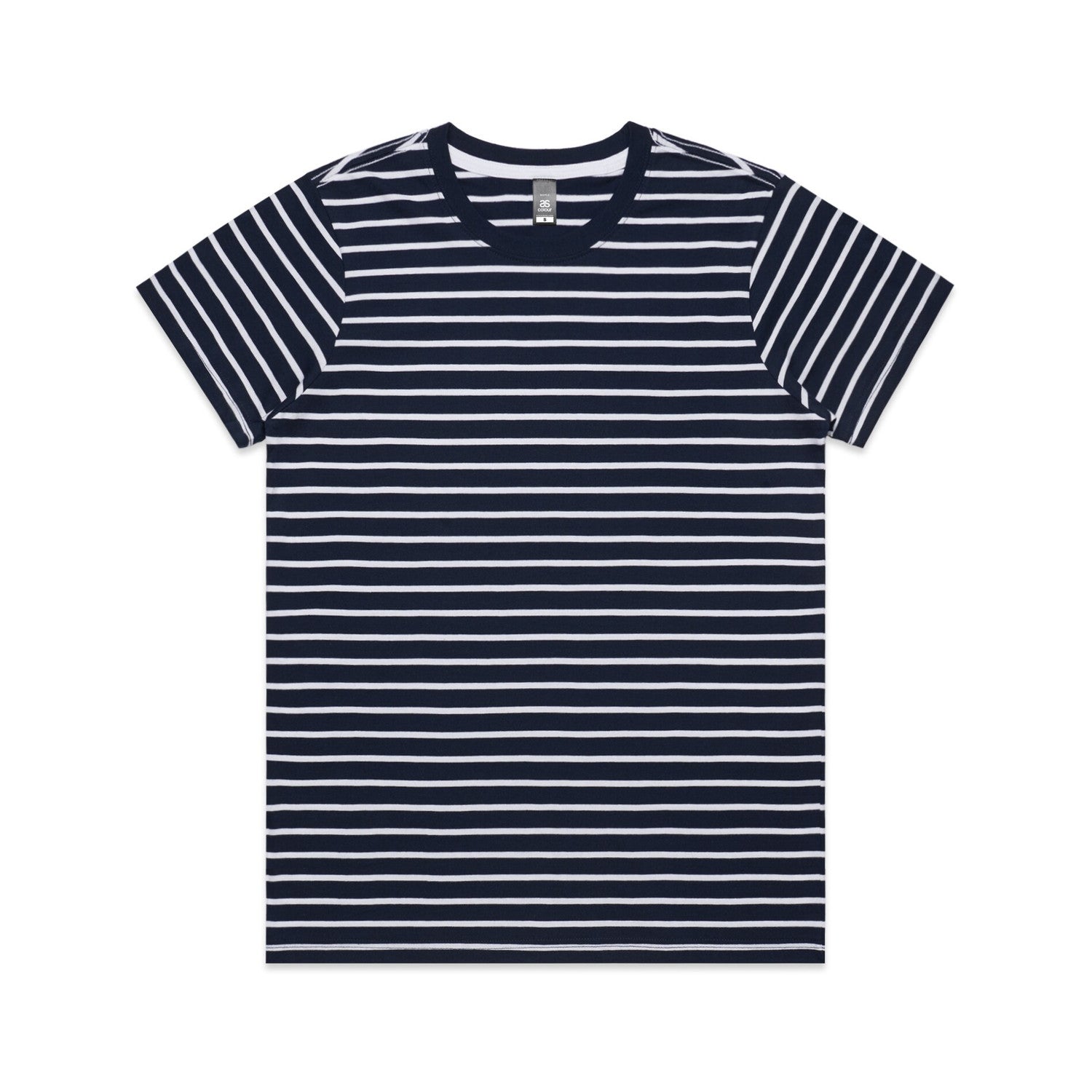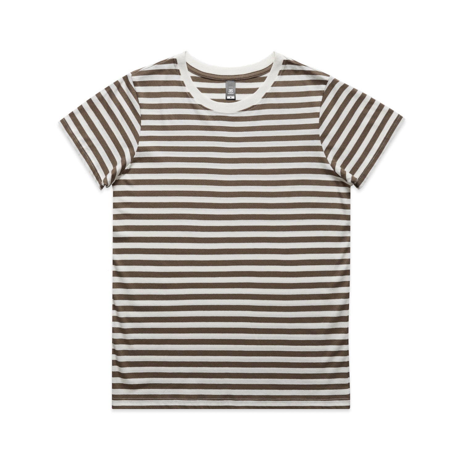 This Women's Maple Stripe Tee offers a regular fit with a lightweight feel thanks to its 150 GSM, 34-singles, 100% combed cotton fabric.