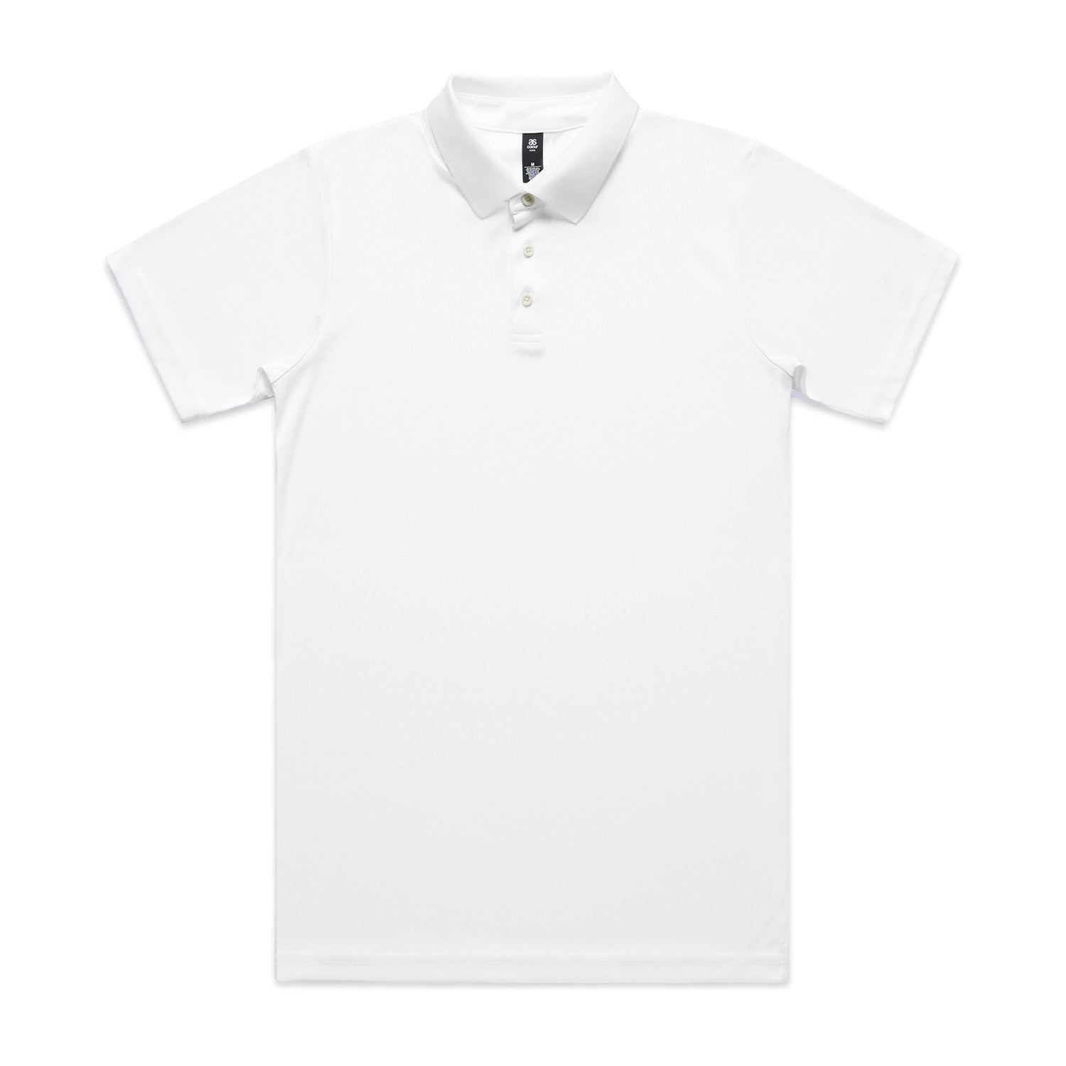 It features a regular fit with mid-weight, 185 GSM 100% recycled polyester fabric. Designed with short sleeves, a ribbed collar, a 3-button placket with tonal corozo buttons, side seams, and double-needle hems.